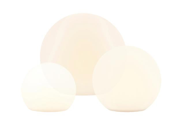 Kugleformede LED-lamper med solar til haven. Lamperne giver et varmt, hvidt lys. Ca. 8 timers fuld opladning i dagslys giver en brændetid på ca. 6 timer. Vandtæt og egnet til udendørs brug. Inkl. spyd som kan monteres under lampens bund og sættes i fx græsplænen.